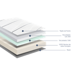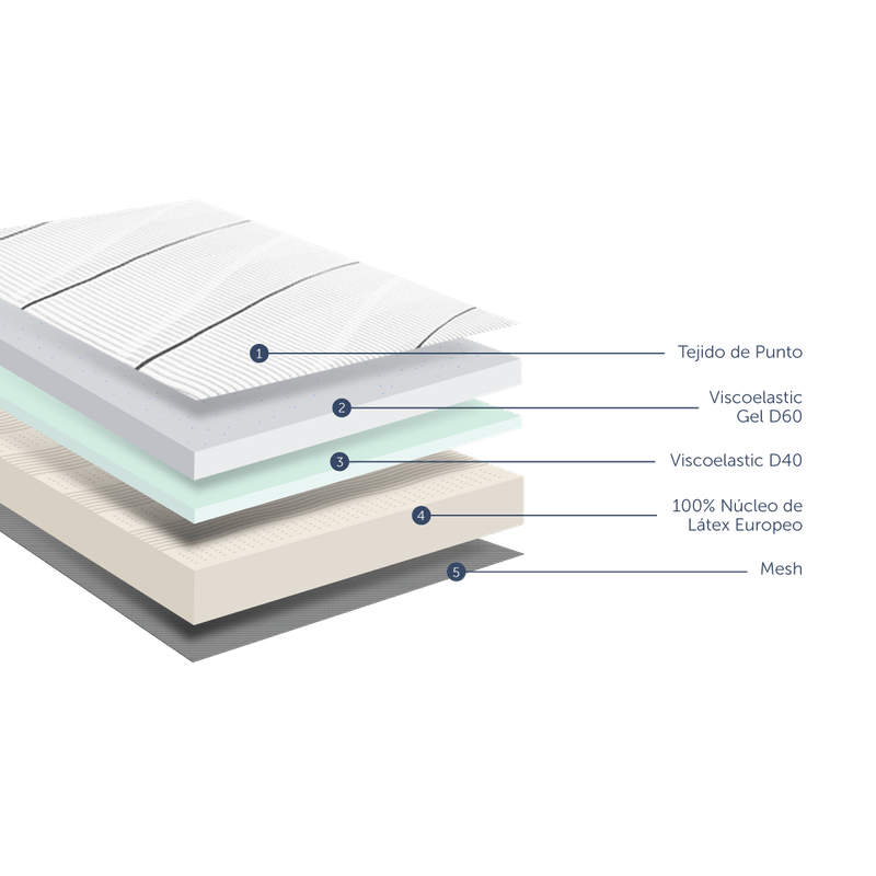 Descripciones | Esencia: te ofrece elasticidad natural debido al núcleo de látex europeo que da soporte ideal a las curvaturas del cuerpo, teniendo como componente adicional visco que mejora la temperatura interna además de dar la adaptabilidad necesaria para un excelente descanso. Dile adiós a los olores con el tratamiento antibacterial Air Fresh. |
