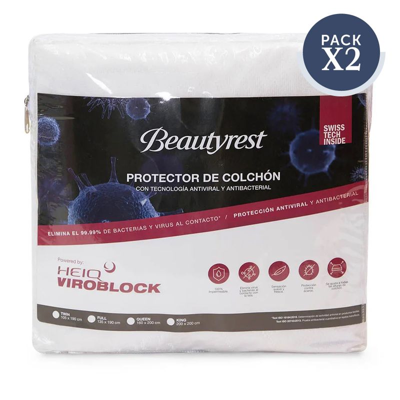 Pack x2 Protector de Colchón Impermeable Beautyrest Heiq Viroblock Pack x2 Protector de Colchón Impermeable Beautyrest Heiq Viroblock | 1 Plaza